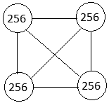 Рис. 4. R = 1, сеть содержит 4 узла, число связей равно шести.