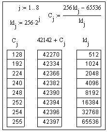 Коррекция роста проведена в 21 точке. Все значения размеров сети, для которых проводилась коррекция М <− М+1, являются (или «почти» являются) делителями числа 65536, если к ним добавить единицу; например, 65536/(13106+1) = 5,000076. Вот частные, которые получаются в результате: