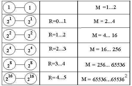 Таблица 1. Рост ментальности сетей рангов R = 0,1,2,3,4.