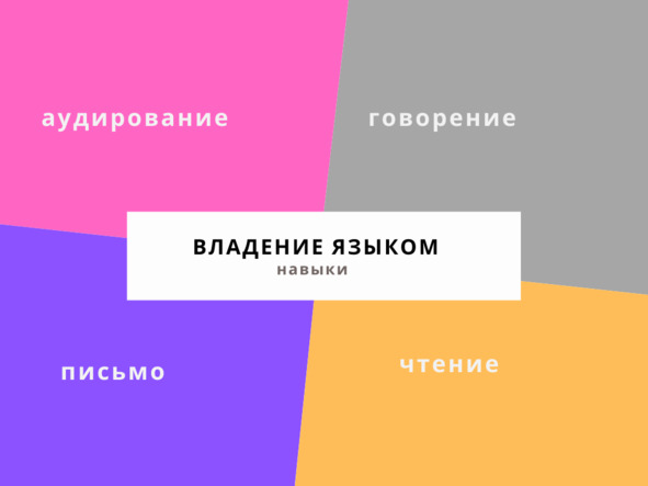 С точки зрения современной лингвистики полноценное владение любым языком включает в себя четыре навыка: