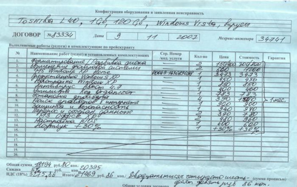 Никодим: Да очень просто. Если вкратце… Человек вызывает мастера. Мастер по приезду кладёт на стол многостраничную распечатку со словами: «Здесь можно ознакомиться с нашими условиями». Никто их читать не будет. В процессе работы мастер ненавязчиво предлагает те или иные услуги: «Биос2 настраивать?»… «Драйвер звуковой карты переустанавливать?»… «Антивирус нужен?» А может вообще ничего не спрашивать, а просто сказать, что операционную систему требуется переустановить. И настроить, естественно. И всё протестировать.