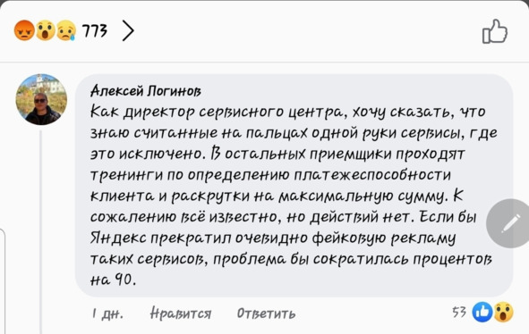В комментарии пользователь, представившийся директором другого сервисного центра, оставил такой комментарий (см. скриншот далее). .
