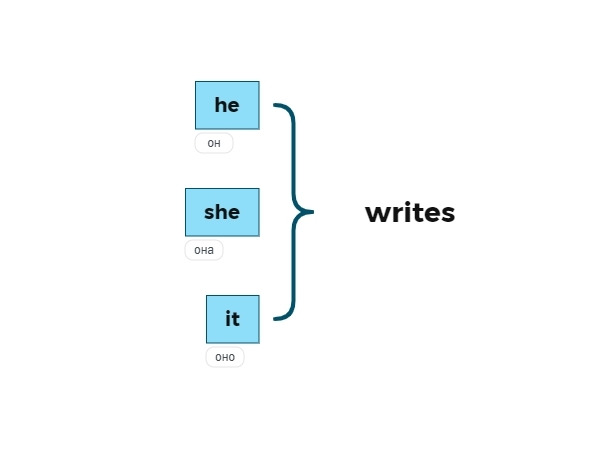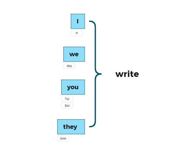 Схема утвердительного английского предложения для простого настоящего времени с глаголом to write (писáть). Часть 1.