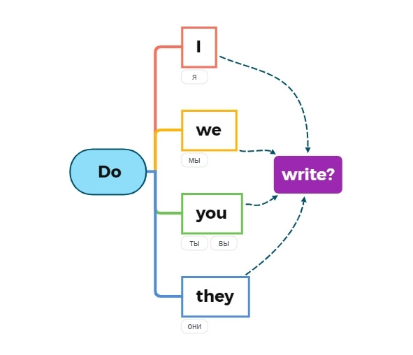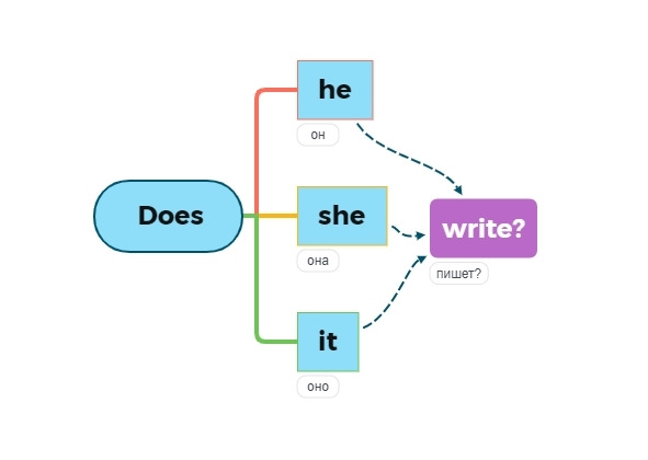 Вопросительное английского предложение без вопросительных слов для простого настоящего времени с глаголом to write (писáть). Часть 2.