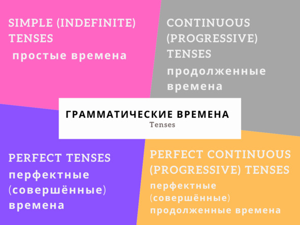 • Perfect Continuous Tenses/Perfect Progressive Tenses – перфектные (совершённые) продолженные времена.