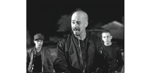 Перед разгромом скинхедами магазина, принадлежащего корейскому предпринимателю, их лидер произносит агитационную речь.