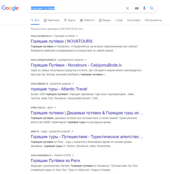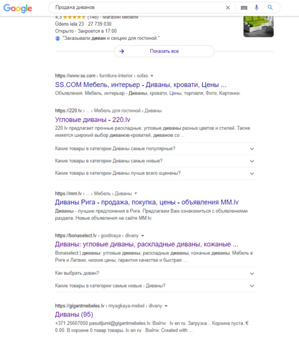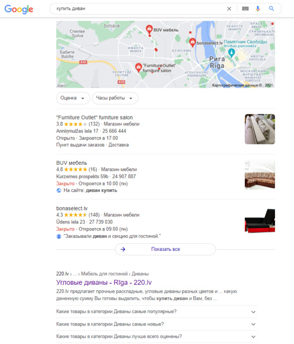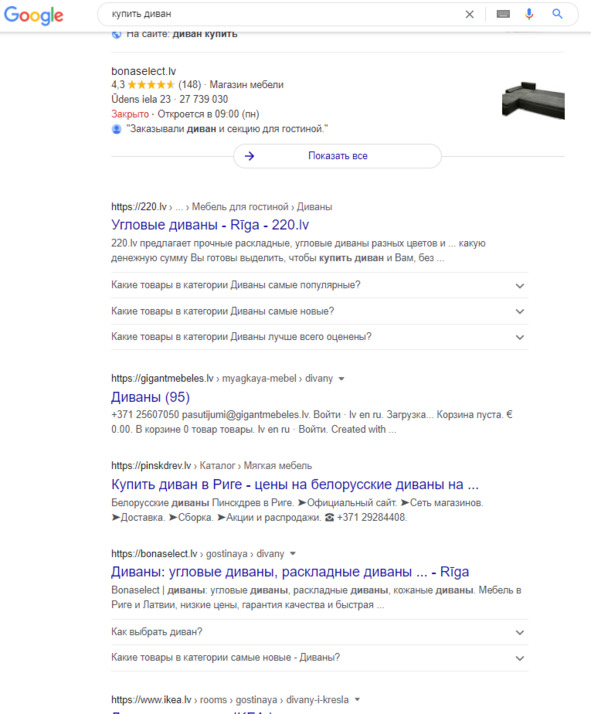 Обратите внимание на скриншот ниже. Видно, что Google, понимая, что я нахожусь в Риге, в районе Иманта выдал рижские интернет-магазины поблизости.
