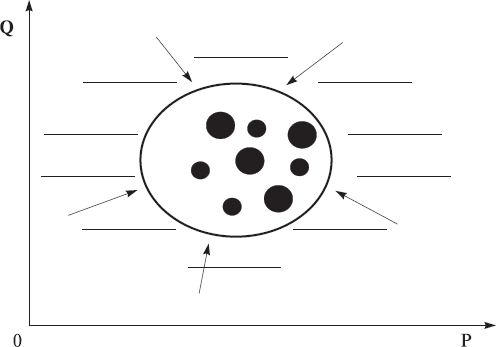 Within the problem of describing agents’ behavior in the market, the role of the good prices P as independent variables, or a coordinates P is considered here to be in many situations a unique one for market economic systems. In these cases we can study market dynamics in the economic price spaces. But market situations occur fairly often in which we need to explicitly take into account the independent good quantity variables Q (the bold Q will designate below all the L quantity coordinates) and consequently to describe economic dynamics in the economic 2×L-dimensional price-quantity spaces. In these scenarios, we can imagine that the whole economic system is located in the multi-dimensional price-quantity space as it is displayed in Fig. 4. We have already used many aspects of this idea naturally when discussing classical economics. We will address any concerns in the upcoming chapters.