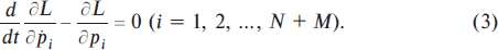 Equations of motion represent a system of second-order N + M differential equations of time t for N + M unknown required trajectories pi(t).