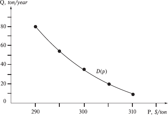 Fig. 1. Graph of the traditional neoclassical demand function D(p) for the model market of grain [1].