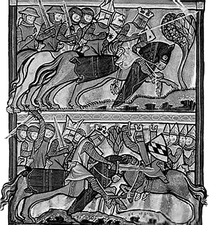 Битва Карла Великого с саксами. Миниатюра из «Жизни Карла Великого» Эйнхарда. XIII в.