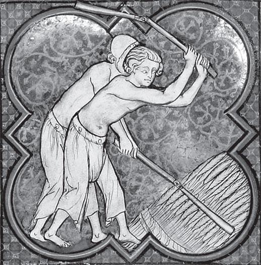 Крестьяне за работой. Миниатюра Мартиролога из аббатства Сен-Жермен-де-Пре. XIII в.