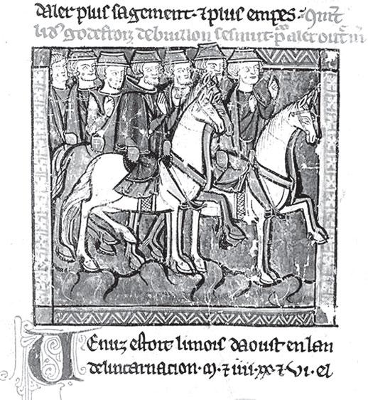Рыцари отправляются в Первый крестовый поход. Французская миниатюра. XIII в.