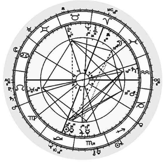 На этой карте заметно преобладание квадратур (аспектов, в которых планеты расположены друг от друга в 90 градусах, то есть на расстоянии трех знаков) и оппозиций (аспектов, в которых планеты разнесены на 180 градусов, то есть между ними шесть знаков). И квадратуры, и оппозиции считаются напряженными аспектами, поскольку означают сложности и конфликты в жизни натива соответственно. Однако в некоторых случаях квадратуры и оппозиции указывают на то, что натив способен добиться больших перемен – все зависит от общей картины в натальной карте. Подробно о напряженных аспектах в натальной карте Кроули мы поговорим далее.