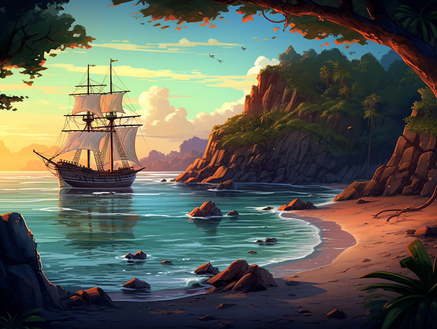 Твёрдыми широкими шагами пират стремительно шёл к лодке. А кожаные сапоги отстукивали каблуками настоящий приговор для свисающей с плеча несчастной и некрасивой пиратки. Именно таковой она чувствовала себя всю жизнь. И искала своё место. Кто знает, что замыслил этот пират? Быть может поиграет, а потом выкинет за борт? Всё может быть…