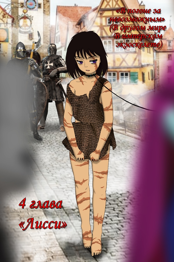 Второй торговец тоже с благоговением смотрел на меня и согласно кивал на все слова своего родственника. Наёмники закончили с перевязкой раненого товарища и вместе со слугами начали грузить его в повозку. Я обратил внимание, что девочка в лохмотьях продолжает сидеть коленями в пыли, возле колеса, держась рукой за спицы, словно не понимает, что беда миновала, и смерть ей больше не грозит. Ни слуги, ни торговцы, ни наёмники не обращали на неё внимания, занимаясь своими делами. Я присмотрелся к ребёнку. Волосы грязные. На шее собачий ошейник. Тело едва прикрывает серая, рваная тряпка, заменяющая девочке платье. Я, конечно, не уверен, но, кажется, раньше это было мешком для муки, в котором, весьма небрежно, прорезали дырки для головы и рук. Но самое страшное даже не это. На руках и ногах девочки я заметил жуткие шрамы и следы от ожогов. Широкий шрам был даже на лице. И это просто чудо, что получив такую ужасную травму, она не лишилась левого глаза. Слуги, наконец, обратили на неё внимание. Один из парней пнул девочку, вынуждая её подняться.