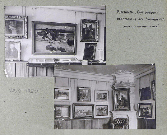 На выставке «Быт рабочих и крестьян в искусстве западных художников эпохи империализма» рядом с произведениями экспонировались отзывы бригады рабоче-крестьянской инспекции. Государственный музей нового западного искусства, 1929–1930. ГМИИ им. А.С. Пушкина