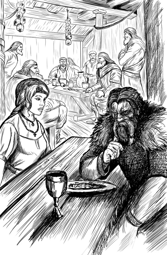 – Положь его! А ну! Не замай, – закричала хозяйка звонко, пуще воевод. – Не видишь пьяный дурак? Тебе потом виру платить охота, да жинке его с детьми в глаза смотреть? Обиду учинил? Так дурак пьяный – чего с него взять? Вилкой ткнул? Ой, как страшно такому воину! И вы Отец Ефстафий – так-то вы меня благодарите за доброту – кров и пищу, кою вы получили, не заплатив ни куны? Из христианского великодушия приняла и поняла сердцем вашу нужду, а вы – подстрекаете к крови? В моем доме?