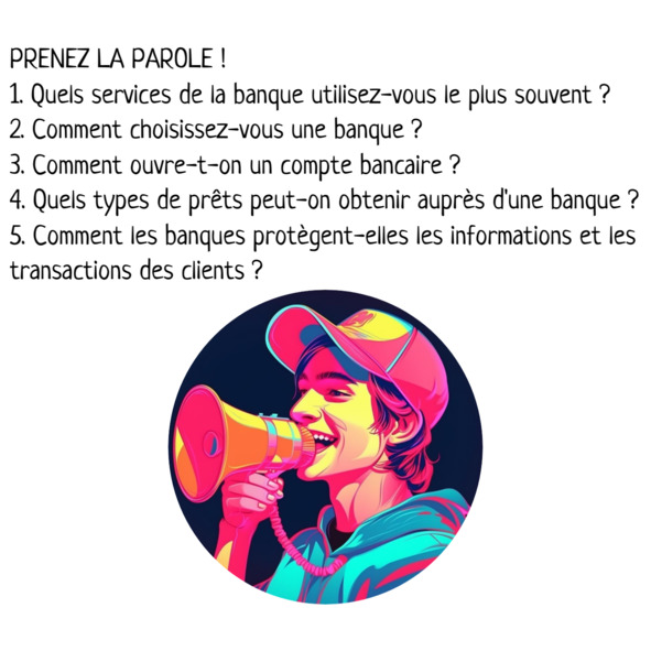 4) Qu’est-ce qu’on voit quand on entre dans la banque?