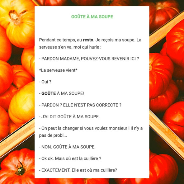 10. Comment pourriez-vous décrire l’humour de cette situation?
