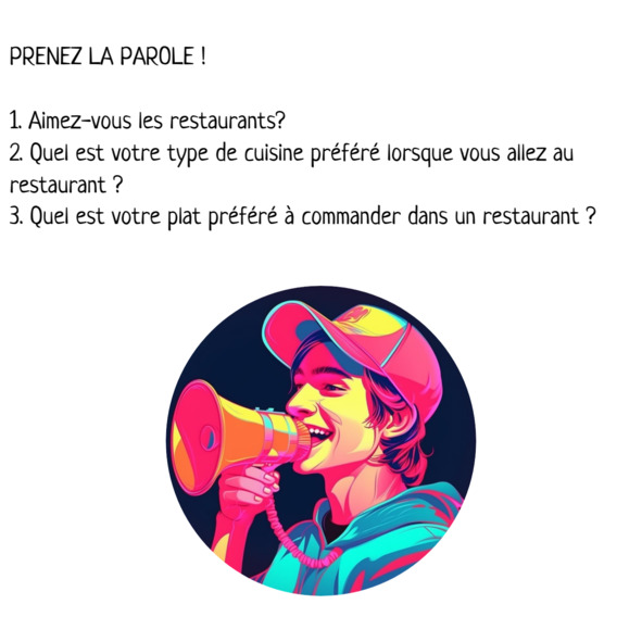– Bonjour, bienvenue au restaurant Le Délice. Êtes-vous prêt à commander?