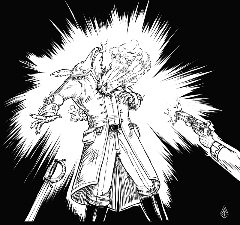 Солдат пошатнулся. Сабля выпала из руки, и металлический звук ее удара об пол разнесся эхом по всей мастерской. Грим привстал и выглянул из-за прилавка: из груди и пасти джакурийца валил густой рыжеватый дым. Все его тело обмякло, голова беспомощно запрокинулась, и солдат с грохотом рухнул на спину. Вся комната заполнилась запахом паленого мяса.