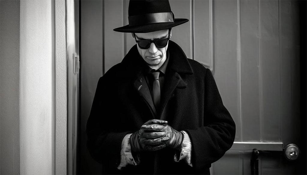 Руслан подошел к двери. Посмотрел в глазок, спросил: «Кто?». В ответ тишина. У двери стоял странно одетый, для такой погоды человек средних лет. Черная мокрая шляпа, пальто такого же цвета, перчатки, ботинки и брюки тоже черные.