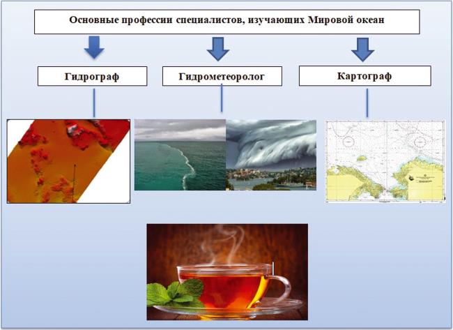 В нашем примере с чашкой чая океанолог – это тот, кто изучает налитый в чашку чай. Крепкой заварки он или слабой? Черный чай или зеленый? Горячий он или остывший? Прозрачный или темный? Что за кусочек лимона плавает на поверхности (это аналог льда в водоемах)? Ответы на эти вопросы даст океанолог.