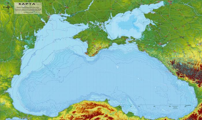 На рис. 2.4 [9] приведена современная морская карта, позволяющая оценить общий рельеф и увидеть, как изменяется глубина от побережья к центральной части моря.