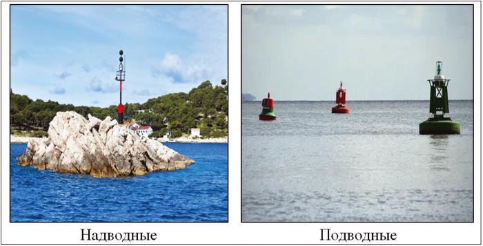 Рис. 3.7. Обозначение на акватории навигационных опасностей.
