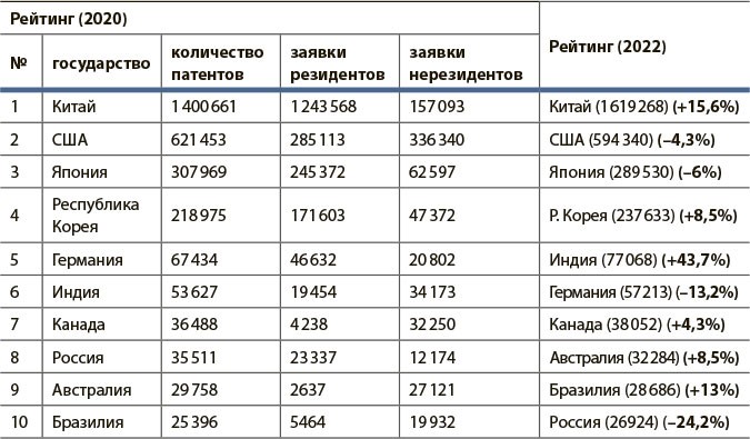 Патентная статистика – наиболее часто используемый критерий оценки технологического потенциала той или иной страны. Соответствующие сведения, поступающие от национальных ведомств по охране интеллектуальной собственности, собирает и обрабатывает входящая в систему ООН Всемирная организация интеллектуальной собственности (World Intellectual Property Organization)[24][25].