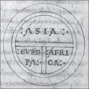 Centuries later, merchants and travelers who were pushing farther and farther afield in the search for new markets brought back garbled reports of the mighty Rivers Don and Nile running south out of Asia and north out of Africa to form a T-shape with the well-traveled waters of the Mediterranean. The waters of the ocean were then thought to surround the world in a gigantic O, leading to the creation of the so-called T-O maps, which represented for ancient Greek, Roman, and even Arab seamen an agreed image of the outline of the world.