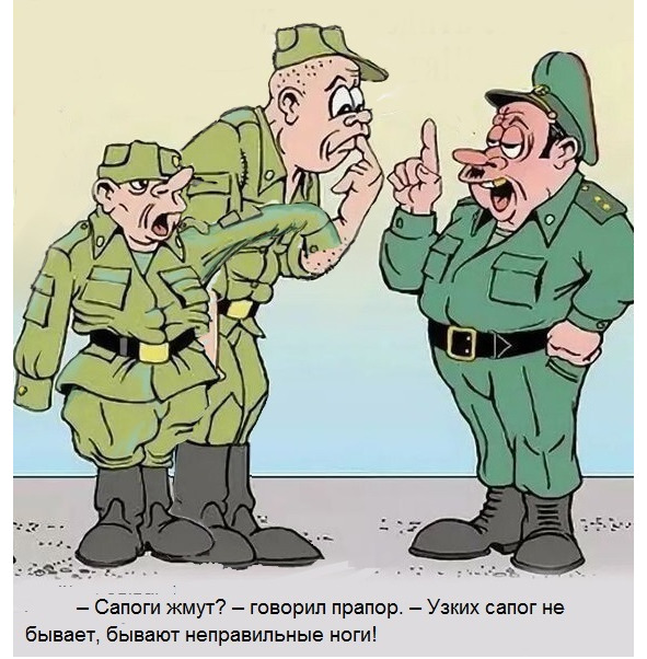 – Сапоги жмут? – говорил прапор. – Узких сапог не бывает, бывают неправильные ноги!
