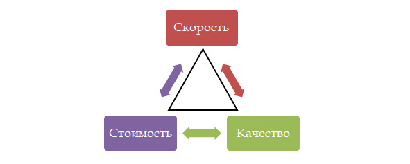 В бизнесе существует треугольник: скорость-стоимость-качество. Эффективно сочетаются только два из этих параметров. Или что-то будет сделано быстро, качественно, но более дорого. Или быстро – дешево, но с качество будет чуть ниже. Причем качество не обязательно может быть в содержании, оно может быть в форме, т.е. можно написать статью по бизнесу, описывающую полезные фишки, которые бизнесмены смогут применить немедленно и получить отличные результаты. Можно несколько недель редактировать статью и проверять раз за разом пунктуацию и орфографию, а можно осознать, что бизнесменам в первую очередь нужен не стиль изложения, а содержание, и выложить эту статью, чтобы читатели могли быстрее получить нужный результат.