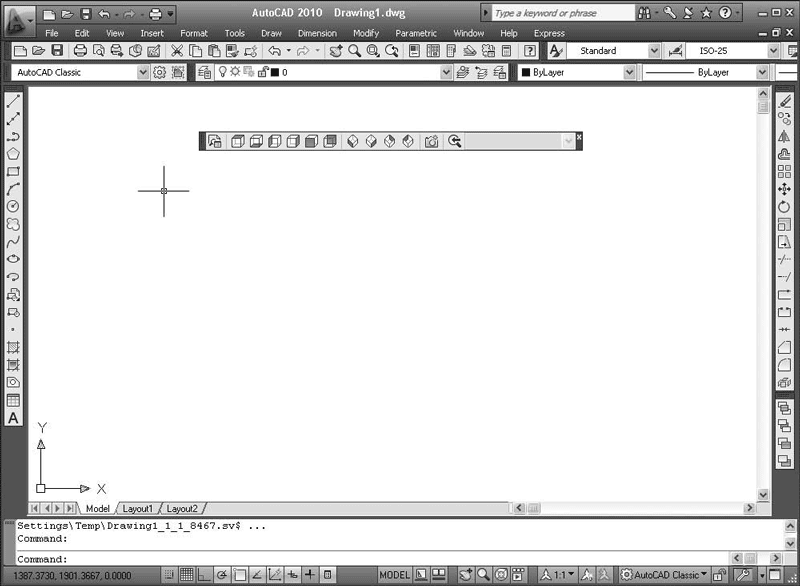 По умолчанию в рабочей области программы AutoCAD 2010 классического вида отображены восемь наиболее используемых панелей инструментов, присоединенных к верхней, левой и правой сторонам графической области программы. Остановимся на двух наиболее часто используемых панелях инструментов.