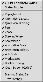 Application Status Bar Menu (Меню содержимого строки состояния) – в открываемом с помощью этой кнопки меню задается отображение кнопок включения/выключения режимов черчения в строке состояния (рис. 1.20).