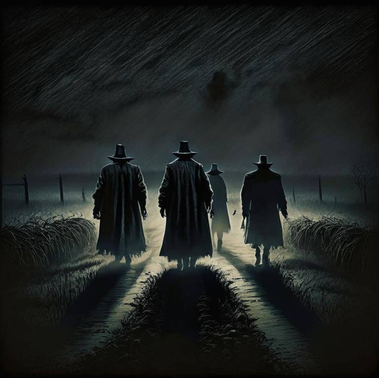 Одеты незваные гости были под стать обстановке: длинные плащи, широкополые шляпы, скрывавшие верхнюю часть лица, и маски, прятавшие нижнюю. Когда манёвр завершился полным окружением, разбойники достали из мешков за плечами рыбацкие сети.
