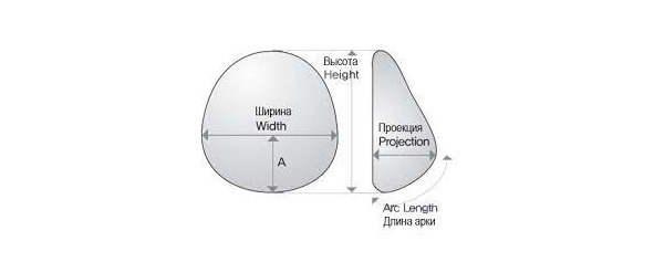 *Анатомические импланты (они же каплевидные) имеют 3 величины: высоту, ширину и проекцию (Рис.2).