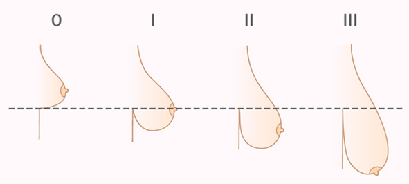 В пластической хирургии различают несколько степеней опущения (птоза) груди (Рис.4):