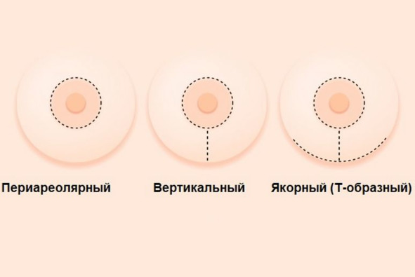 Всего существует 3 основных вида подтяжки груди (я в своей практике применяю 1-й и 3-й виды):