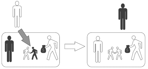 Если основная деловая активность клиента связана с вашим конкурентом и вы хотите, чтобы клиент работал с вами, вы предпринимаете определенные действия по перехвату клиента у конкурента, после чего клиент основной фокус взаимодействия переносит с вашего конкурента на вас.