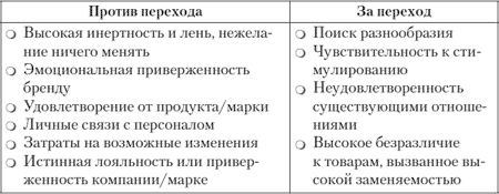 Народная мудростьНа рынке B2C поиск разнообразия стал одной из ключевых ценностей потребителя. Он испытывает внутри себя определенную борьбу мотивов, которая выражается в том, что ему постоянно приходится взвешивать основные доводы «за» и «против» перехода от использования одного товара к другому. В табл. 1 указаны основные мотивы, способствующие или препятствующие переключению с одного товара на другой.