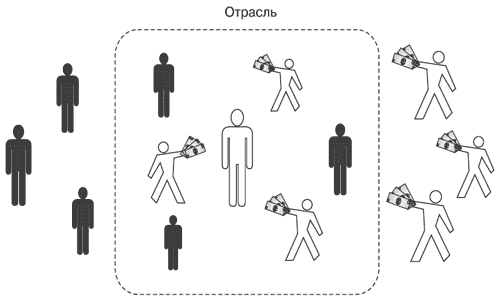 Анализ структуры рынка (отрасли). Для планирования наступательных действий по захвату рынка и перехвату клиентов очень важно обладать информацией об общей структуре отрасли, темпах роста и уровне нестабильности, долях рынка, занимаемых основными конкурентами, и др. Оценка структуры отрасли и стратегической диспозиции конкурирующих сторон проводится с помощью следующих аналитических инструментов.[2]