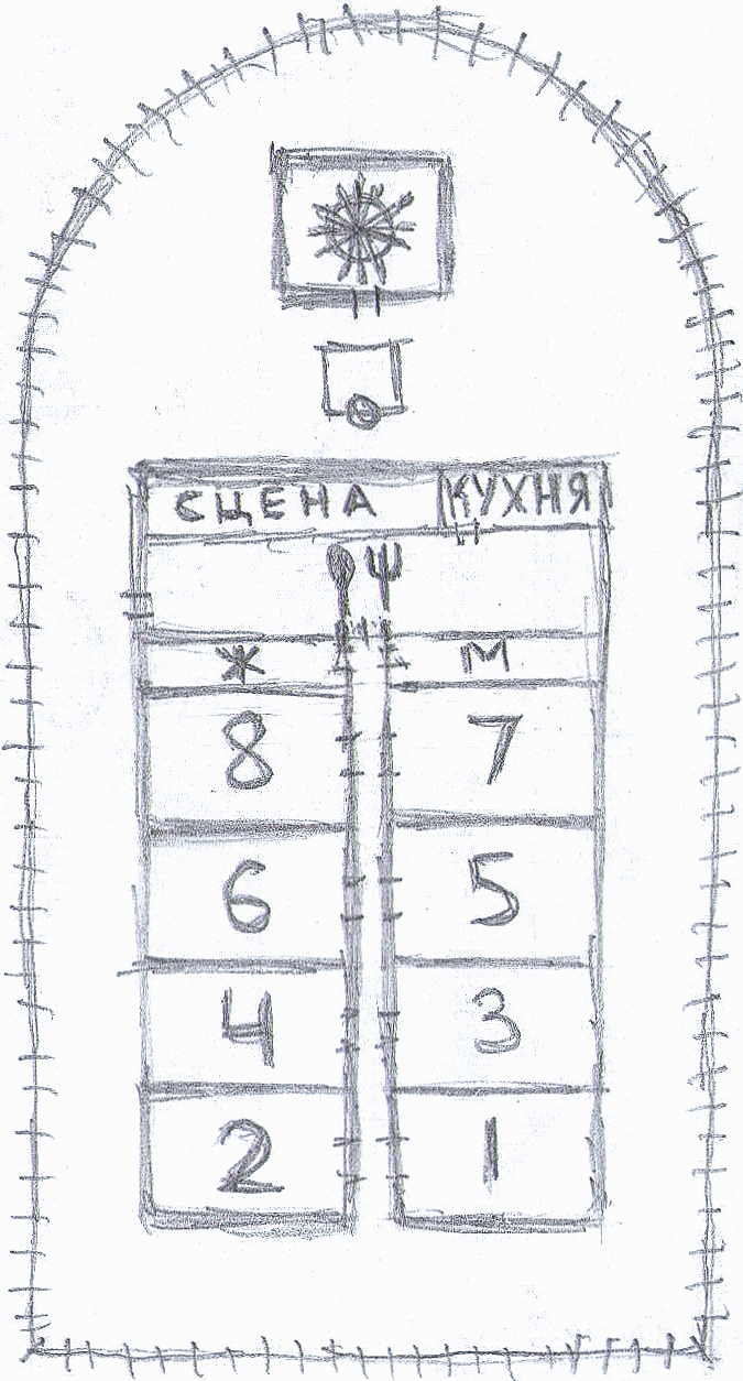 Было 7:45, когда я вошёл через двойные двери в столовую и сел за столик у самого входа. В столовой было ещё семь таких же маленьких столиков. Напротив входа высилась сцена со стулом и стойкой для микрофона. Край сцены был занят помещением с дверью. Через её прозрачное стекло проглядывалась кухня с полками и висящей на стене утварью. По левой стене столовой находилась ещё одна дверь, ведущая прямо на палубу.