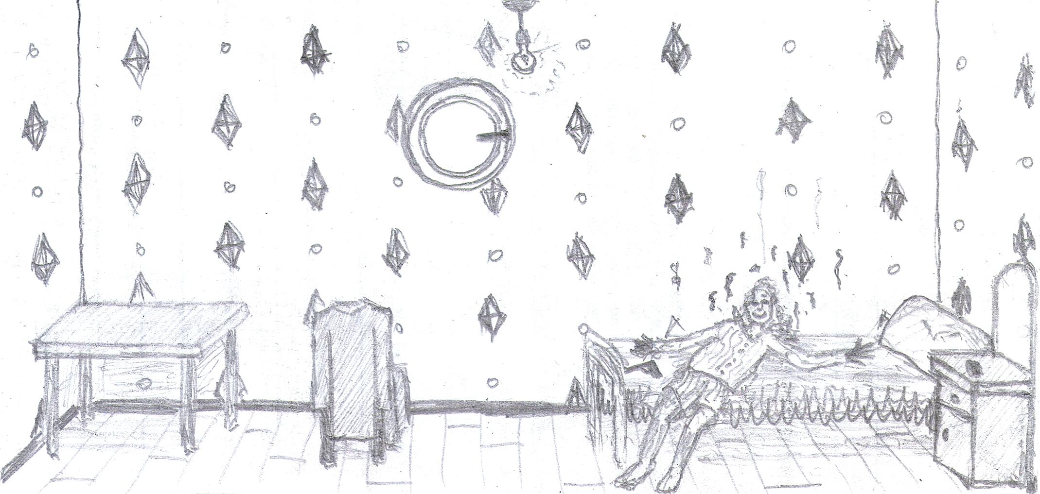 Мы опустились на корточки. Клиренс кровати составлял 30 см. Одеяло свисало с края совсем чуть-чуть, практически не перекрывая вид под кроватью. Ноги Шифера были опущены на пол у изножья кровати.