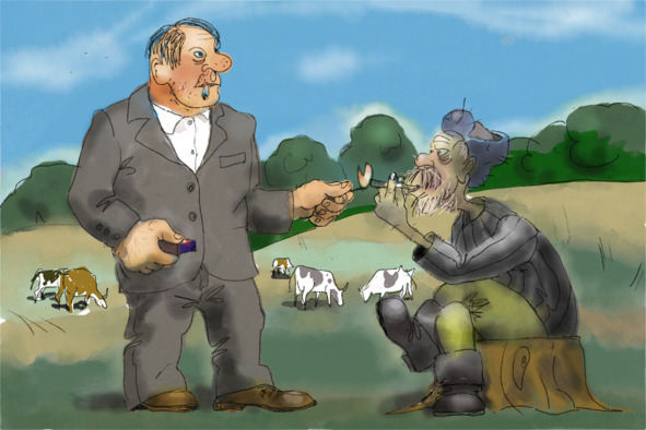Рабочих на участке не наблюдалось. Побросав технику и инструменты, они куда-то смылись. Он поглядел на часы: «Полвторого. Обедать, наверное, уехали. Жаль». Повертев головой по сторонам, неподалеку, возле леса, заметил человека и коров. «Пастух… Наверно, из Лосянки», – обрадовался сыщик и, прыгая через лужи, направился к нему.