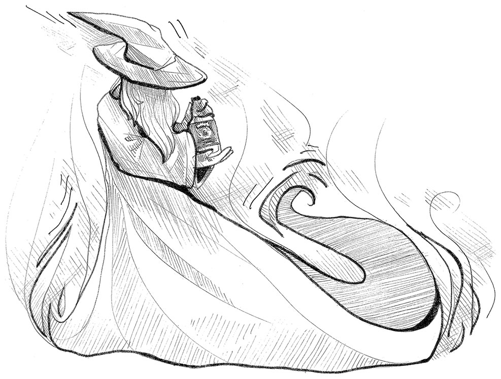 Бледно-голубой призрак в длинных одеждах и конусовидной, широкополой шляпе прошёл сквозь двери, подмигнул Фамильяру и, не снимая головного убора, важно поклонился мне, встречающему его в прихожей.