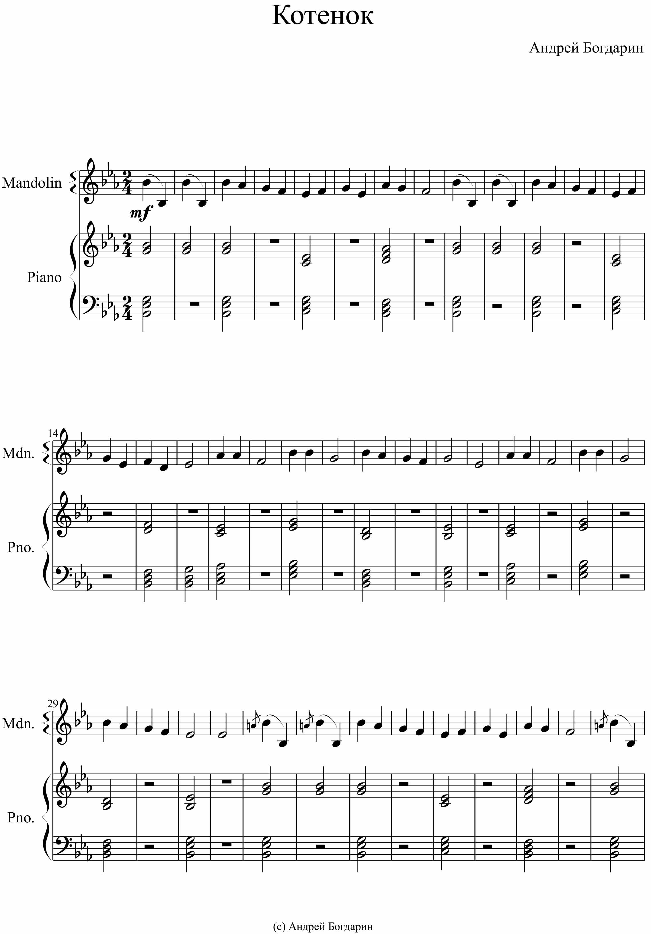 Ноты пьесы «Котенок»
