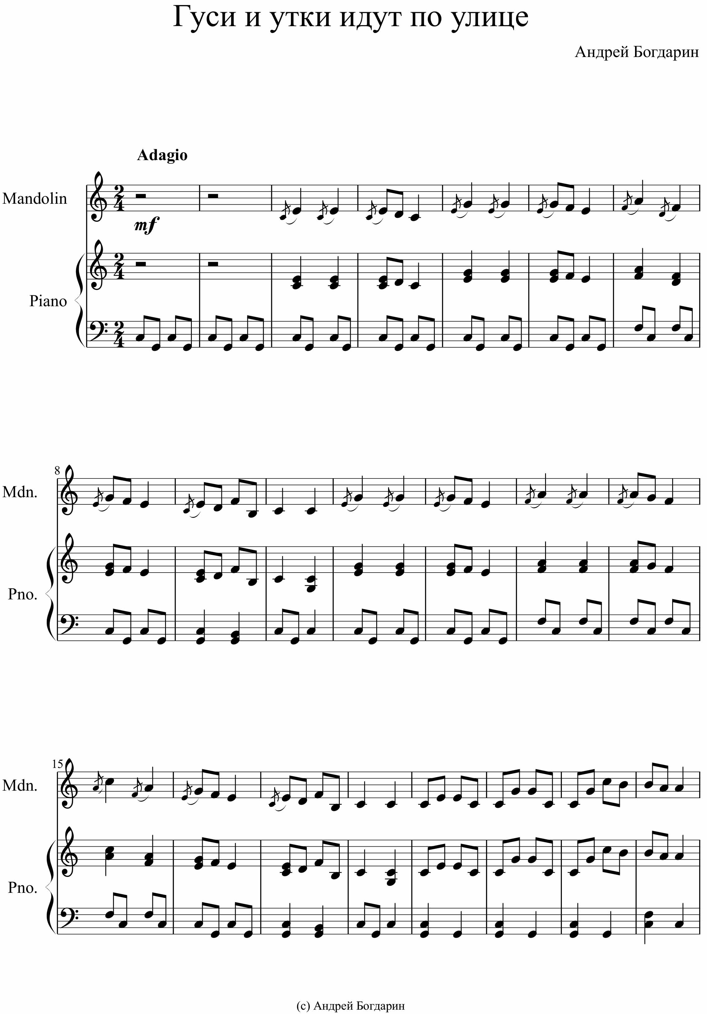 Ноты пьесы «Гуси и утки идут по улице»