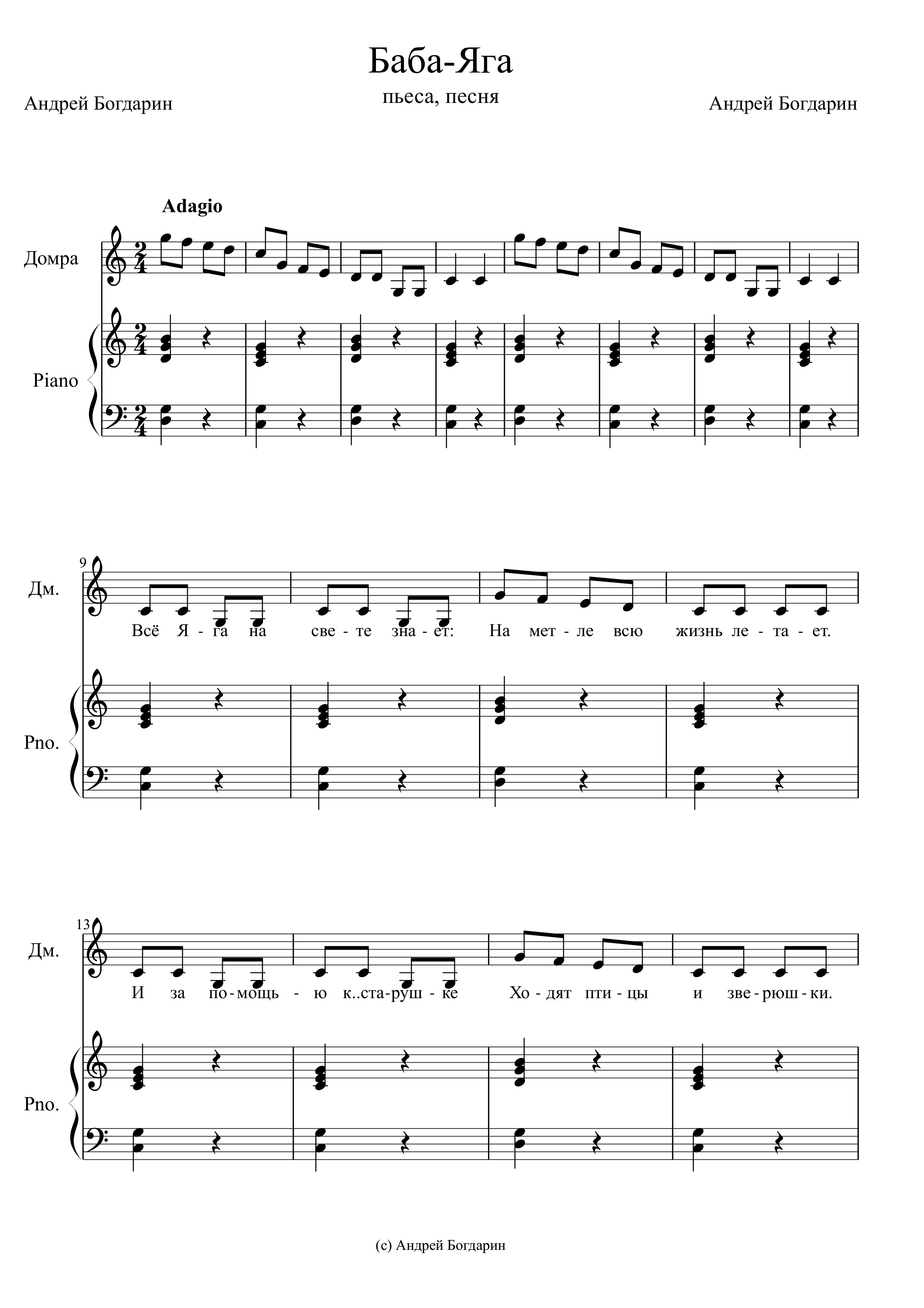Ноты пьесы, песни «Баба-Яга»